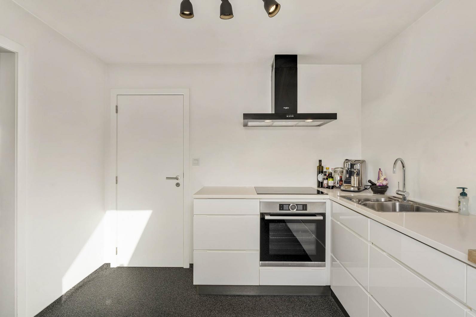 De leefruimte loopt naadloos over in een knus terras, perfect voor een kop koffie in de ochtendzon. De keuken is volledig ingericht en voorzien van alle nodige toestellen zoals een vaatwasser, inductievuur, stoomoven,...