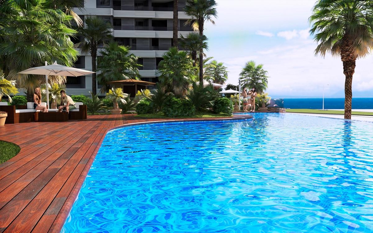 In deze woonwijk heeft u de keuze uit wooncomplexen met twee of drie slaapkamers met elk twee badkamers en een groot terras. Sommige woningen beschikken ook nog eens over een ruime tuin waar u volledig privé tot rust kan komen.
