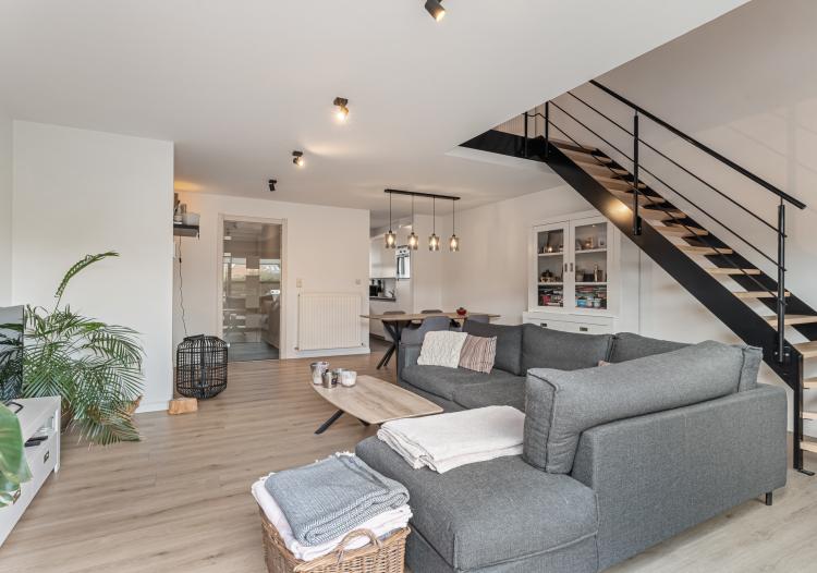 De woning verrast direct met een gezellige zitruimte en eethoek met veel natuurlijke lichtinval dankzij de grote raampartijen, wat de perfecte basis vormt voor een warme en uitnodigende thuis. Aansluitend bevindt zich de volledig ingerichte keuken, van waaruit je een fijn zicht hebt op de voorzijde. Een extra comfortabele troef is de aanwezige, praktische was-/voorraadkamer.