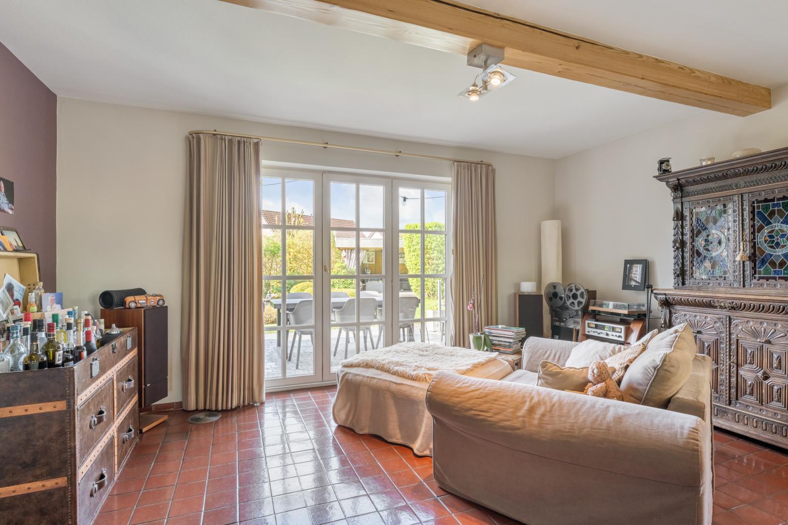 Ook buiten zet het comfort zich voort. De tuin is praktisch en sfeervol ingericht, inclusief een gezellige lounge waar het heerlijk vertoeven is. Voor de natuurliefhebber is de ligging werkelijk subliem: op slechts 200 meter afstand wandelt u zo het achtergelegen bos in. Tegelijkertijd bent u uitstekend verbonden met de rest van de regio, de oprit van de autosnelweg ligt op slechts 5 km afstand en winkels, apothekers en diverse eetgelegenheden bevinden zich in de directe nabijheid.
