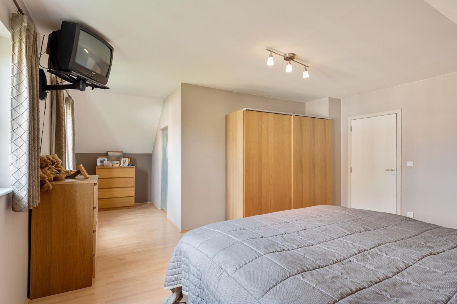 De woning beschikt momenteel over drie slaapkamers, met de mogelijkheid om eenvoudig een vierde kamer te creëren (momenteel ingericht als dressing). Daarnaast is de woning voorzien van modern comfort zoals een grote waskamer en, als kers op de taart, een heerlijke sauna om volledig tot rust te komen. Uw auto parkeert u veilig in de inpandige garage of onder de dubbele carport.