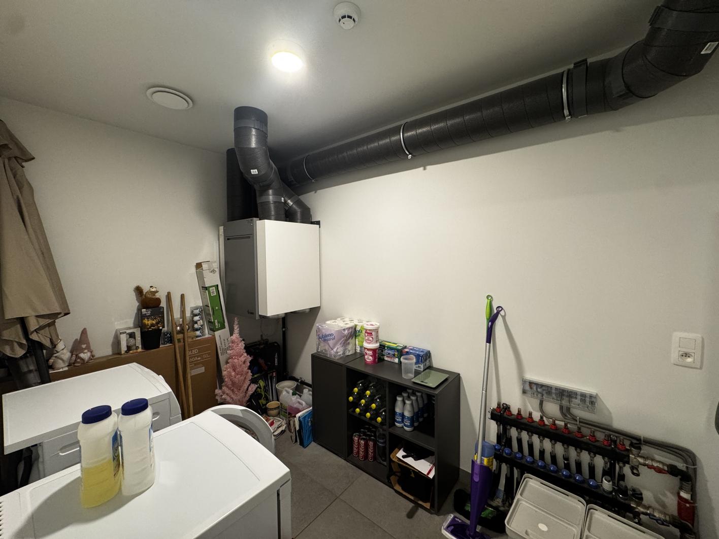 Verder zijn er twee slaapkamers, een zeer ruime berging/technische ruimte, en een badkamer met douche en wastafel. Het toilet is afzonderlijk, wat extra comfort biedt.