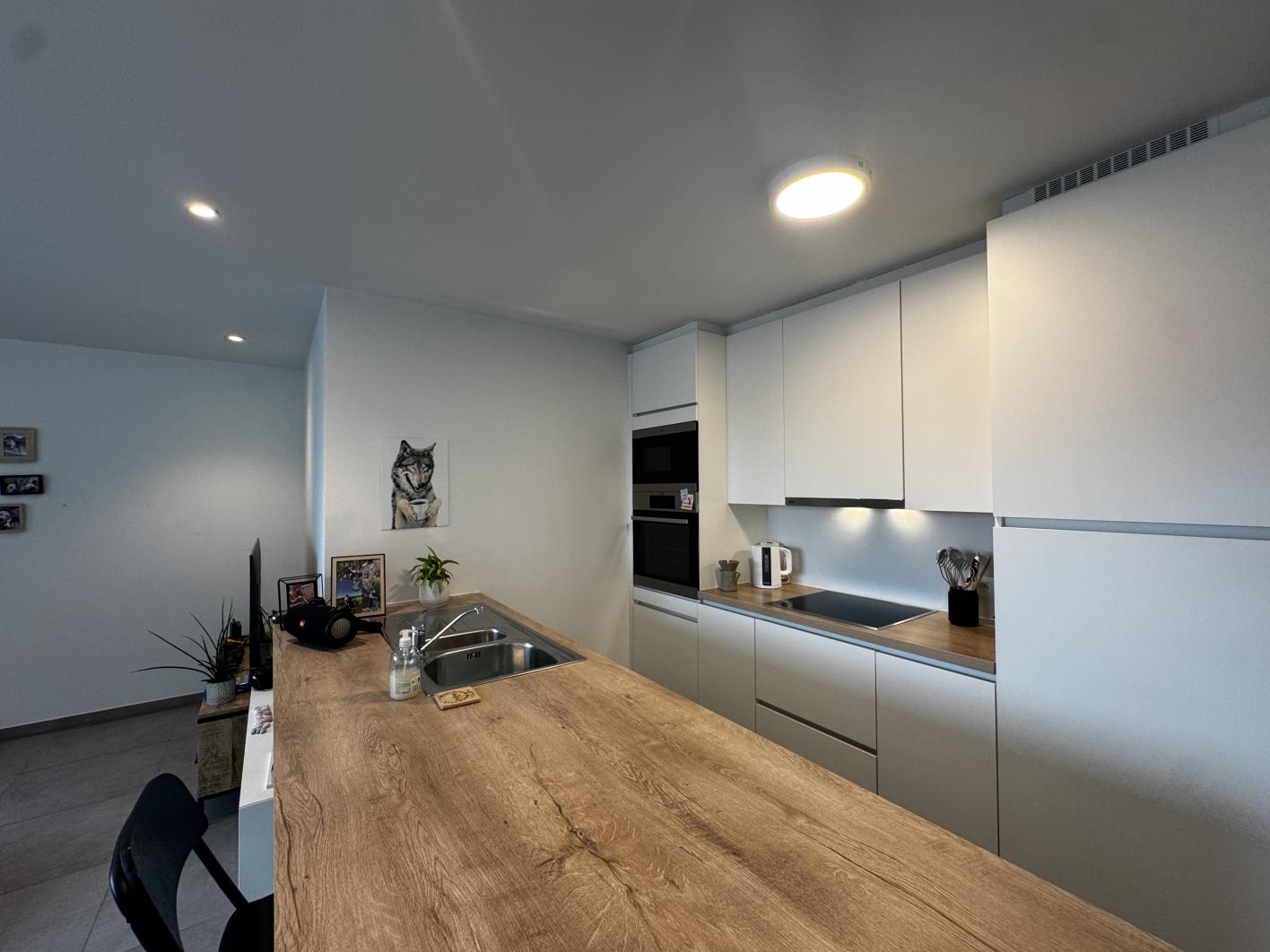 De zeer ruime leefruimte biedt voldoende plaats voor zowel een comfortabele zithoek als een eethoek, ideaal voor wie houdt van open en gezellige ruimtes. De open keuken is volledig uitgerust met alle nodige toestellen, klaar voor dagelijks gebruik en culinaire momenten.