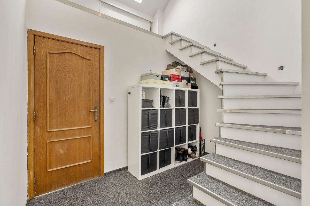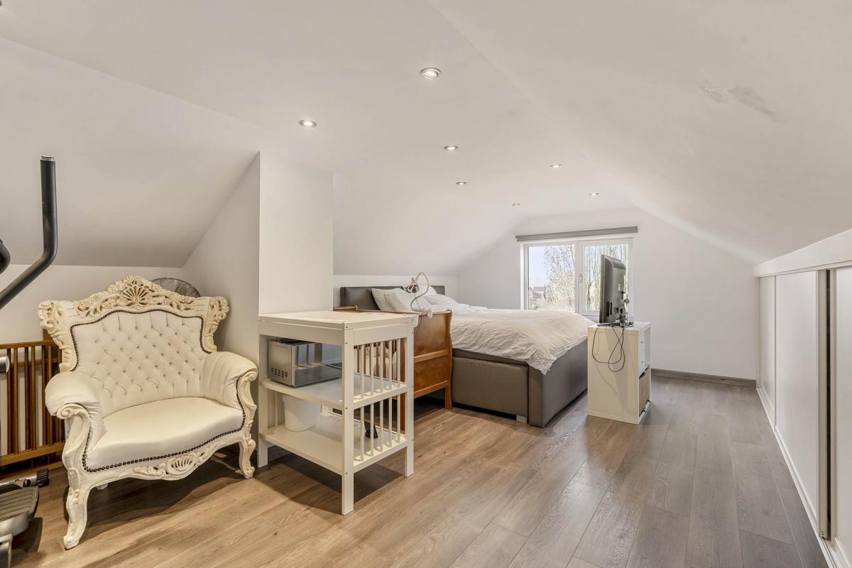 Via de trap bereikt u de bovenverdieping, waar zich een zeer ruime tweede slaapkamer bevindt. De oppervlakte biedt hier tal van mogelijkheden, denk aan het creëren van een dressing of een rustige werkplek. Voor extra stockage beschikt het appartement bovendien over een grote kelderberging.
