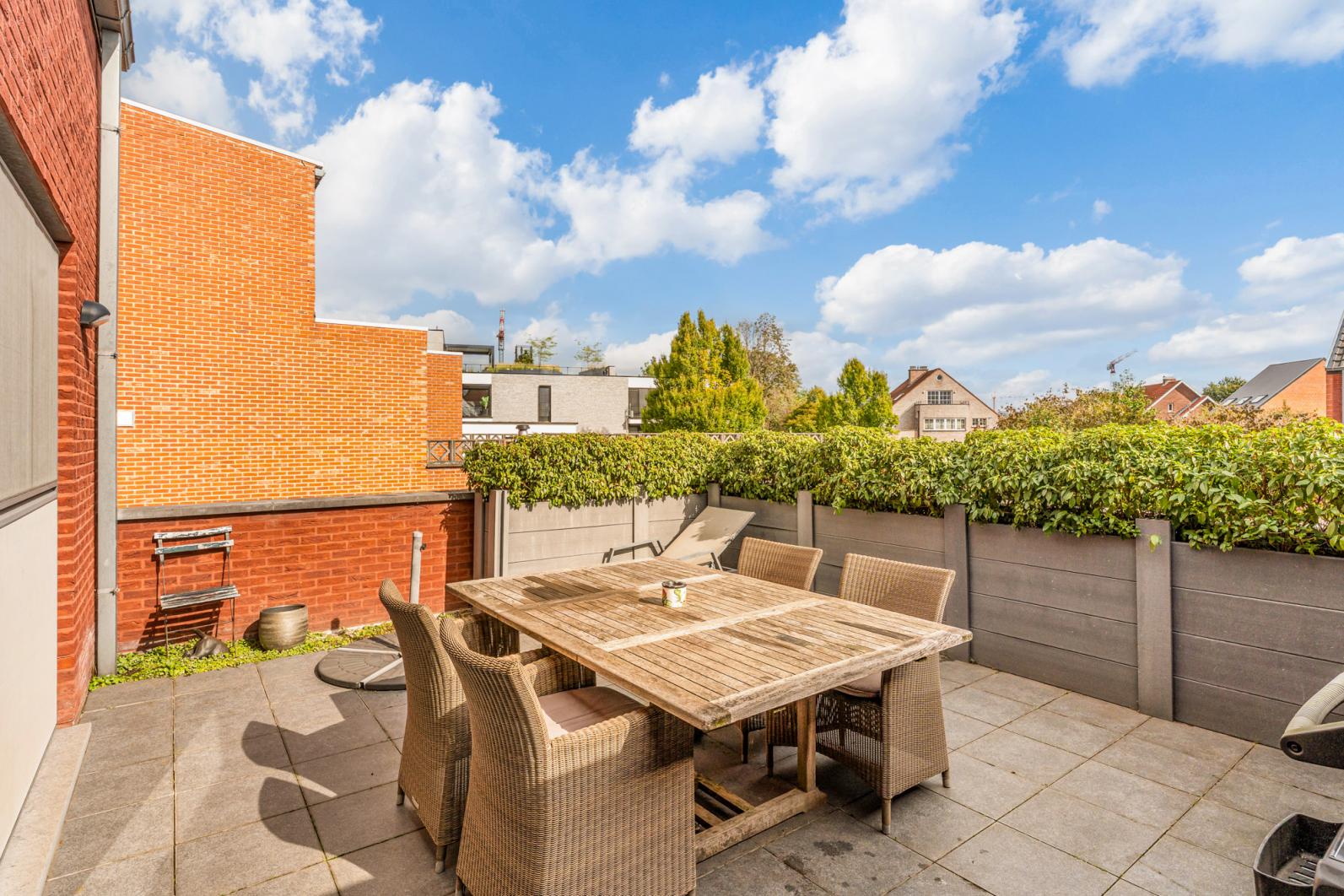 Het absolute hoogtepunt is het grote, oostgerichte terras aan de achterzijde, dé ideale plek om in alle rust van een heerlijk diner of ontbijt te genieten, volledig afgeschermd van de centrumdrukte.