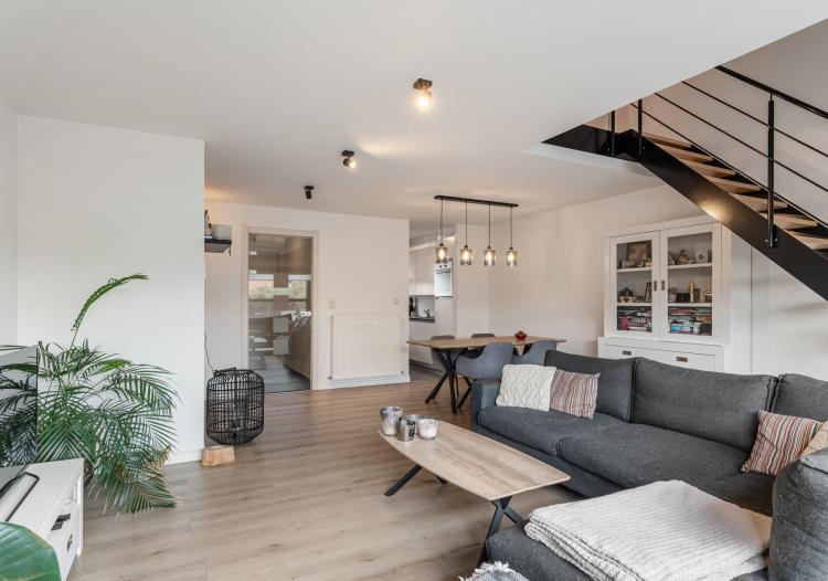 De woning verrast direct met een gezellige zitruimte en eethoek met veel natuurlijke lichtinval dankzij de grote raampartijen, wat de perfecte basis vormt voor een warme en uitnodigende thuis. Aansluitend bevindt zich de volledig ingerichte keuken, van waaruit je een fijn zicht hebt op de voorzijde. Een extra comfortabele troef is de aanwezige, praktische was-/voorraadkamer.