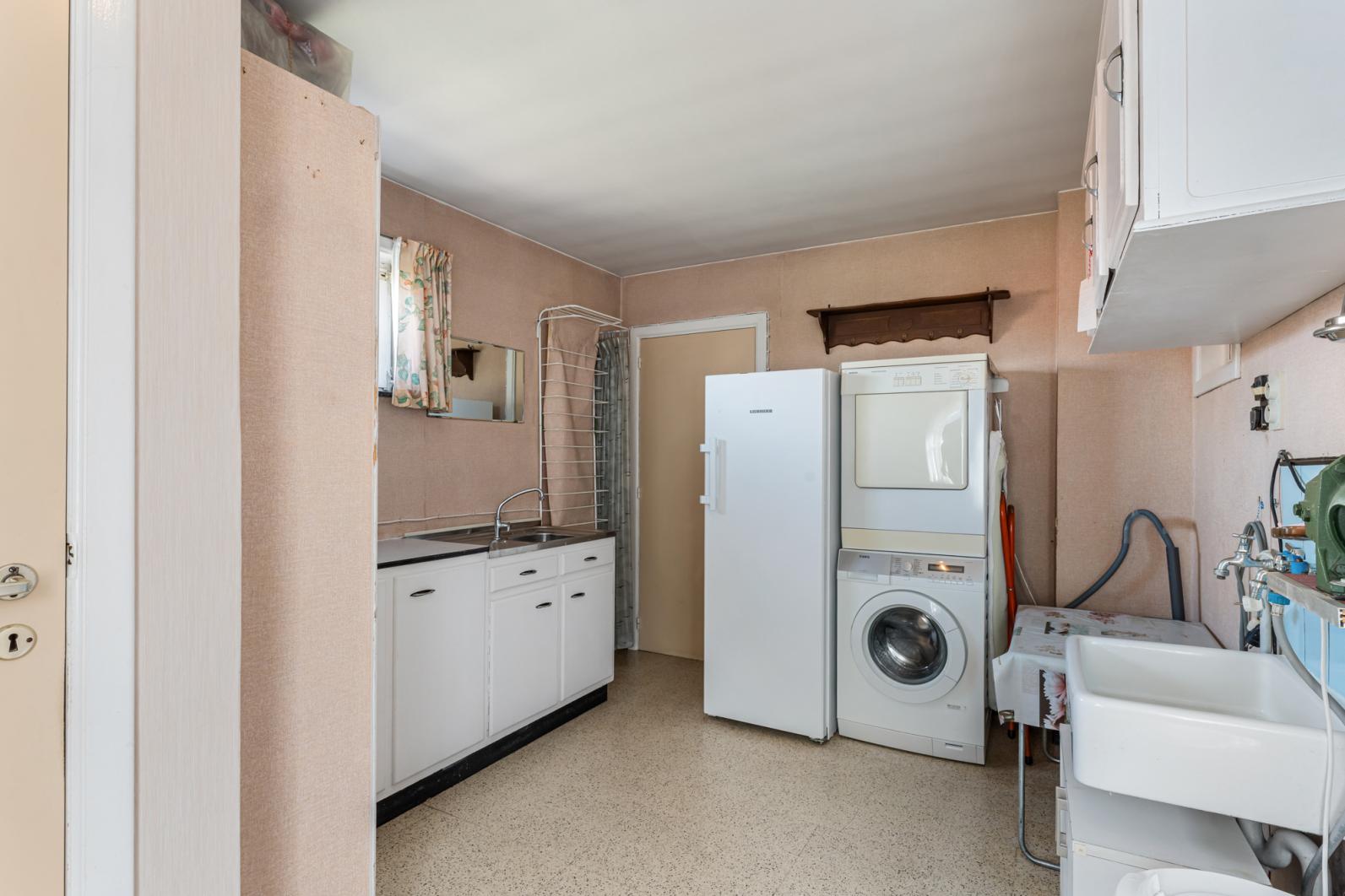 Op de benedenverdieping vind je verder een badkamer en een grote waskamer met voldoende bergruimte. Boven zijn er drie grote slaapkamers. De zolderverdieping biedt de mogelijkheid om een vaste trap te plaatsen en een vierde slaapkamer te creëren. Daarnaast is er nog een tweede zolderruimte voor extra opslag, deze is bereikbaar via de waskamer. Een inpandige garage maakt het geheel compleet.