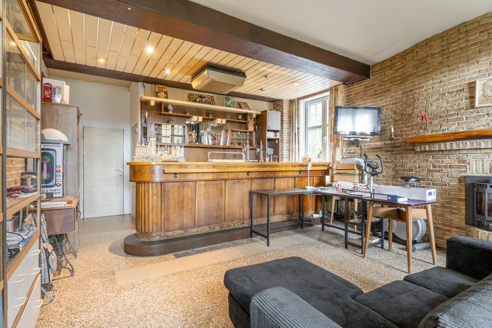 • De voormalige caféruimte is nog steeds ingericht en biedt fantastische mogelijkheden voor een nieuwe horeca-uitbating of transformatie tot extra woon-/bedrijfsruimte.