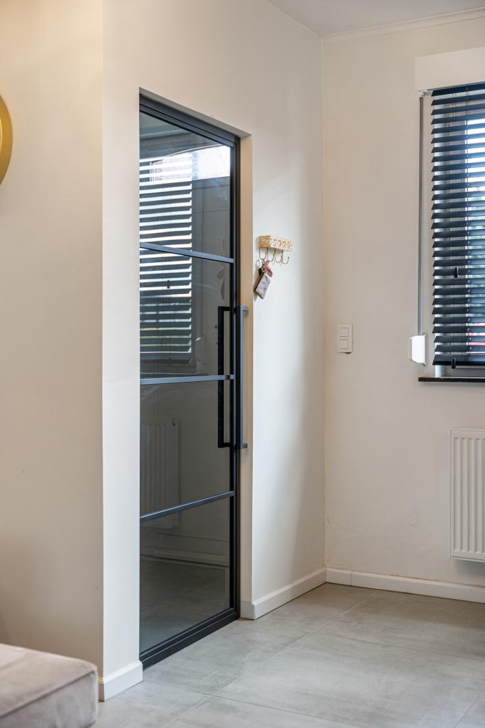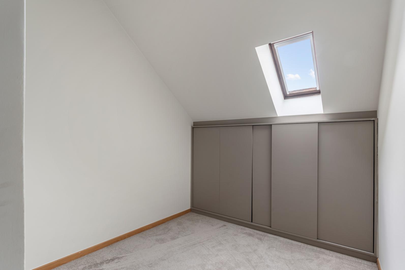De woning is slim ingedeeld met één volwaardige slaapkamer en een extra, flexibele ruimte die uitstekend dienst kan doen als dressing of kinderkamer. De geplaatste inbouwkasten zorgen overal voor maximale opbergruimte.
