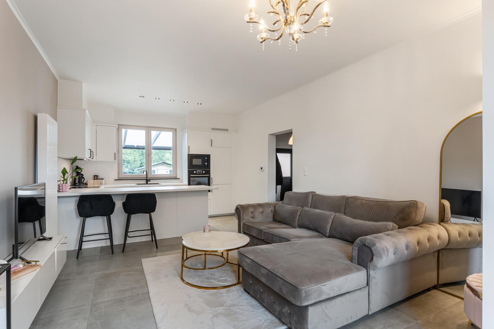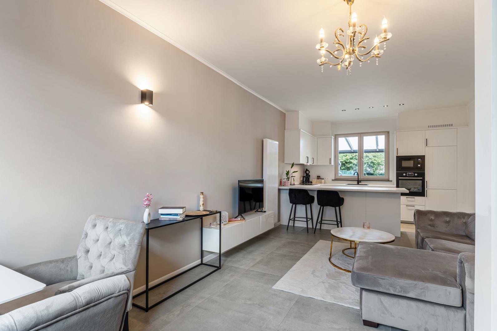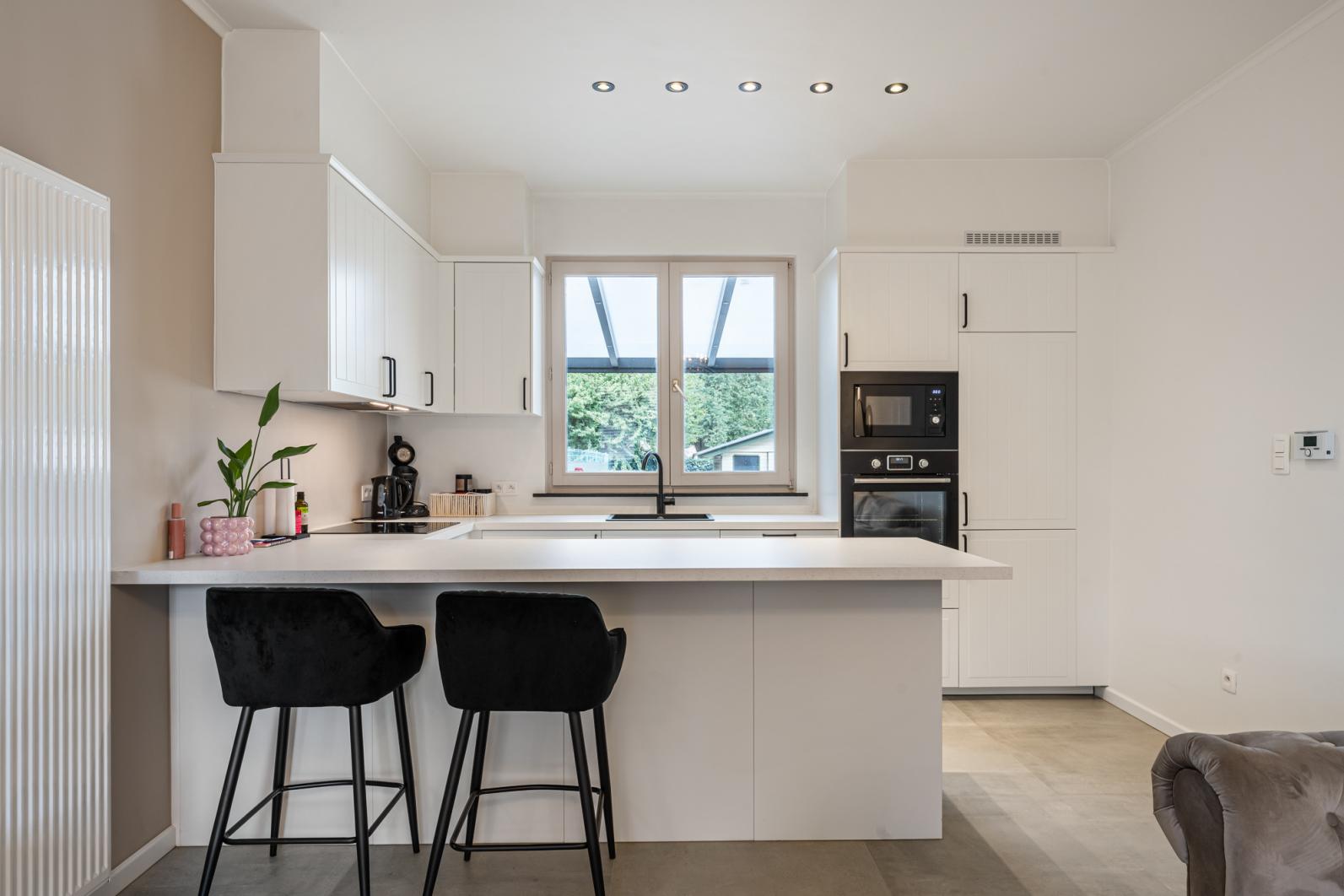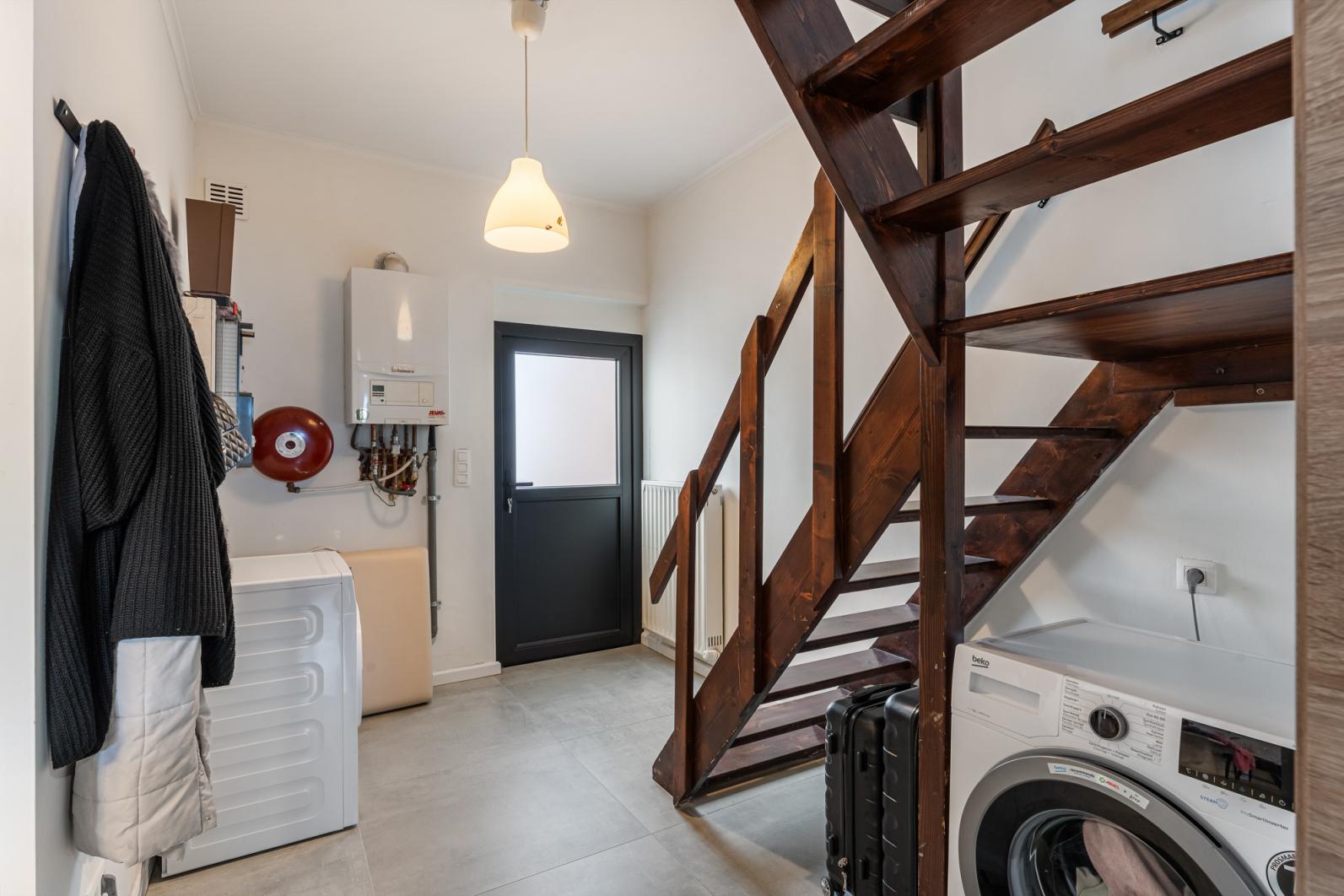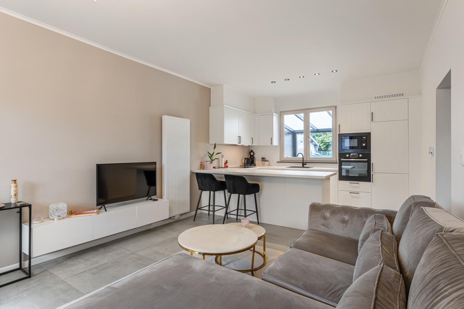 Zodra je binnenstapt, voel je de gezellige en warme sfeer van de woning. De leefruimte is knus en toch ruimtelijk, dankzij de open verbinding met de nieuwe keuken. De keuken is volledig geïnstalleerd met alle nodige toestellen en een gezellige zithoek. Dit hart van het huis is de ideale plek voor etentjes of een gezellige avond op de bank.