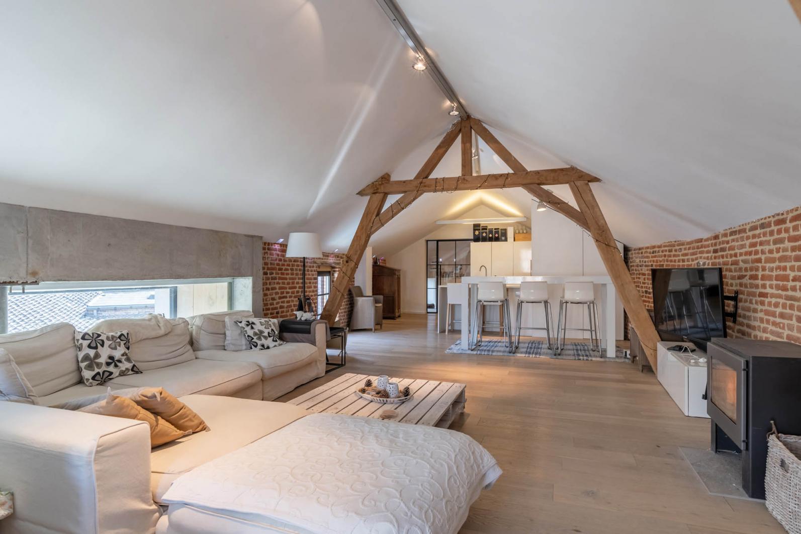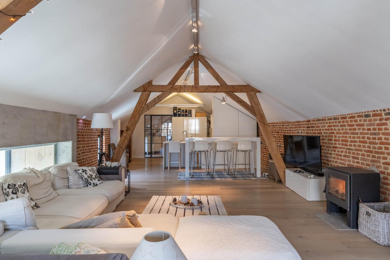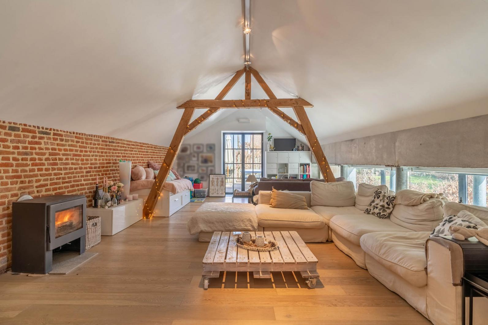 De wellness en polyvalente ruimte met loftgevoel biedt een oase van rust en ontspanning, gelegen in het serene bijgebouw. Geniet van een verfrissende duik in het binnenzwembad of van de rust en het uitzicht in de buitenjacuzzi. Boven is er een prachtige ruimte met een keuken, wastafel, wc en een open ruimte die zich aanpast aan jouw behoeften. Bovendien is er een privé terras waar je kunt genieten van de zonsondergang en het geluid van de natuur.