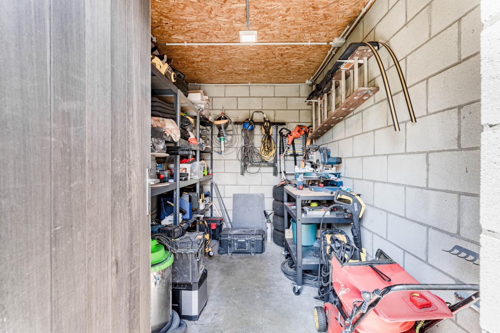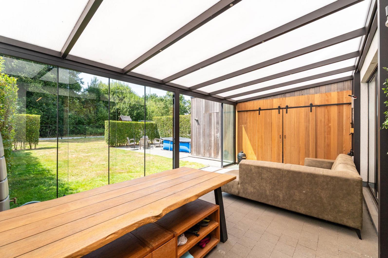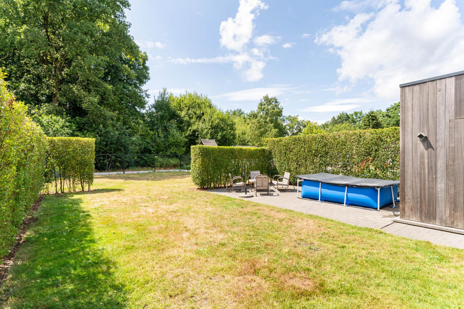 De volledig omheinde tuin biedt veel privacy en een zalige plek om tot rust te komen. Dankzij een poortje achteraan, wandel je rechtstreeks het achterliggende bos in. Daarnaast is er een tuinhuis en een afgewerkte, afgesloten carport aanwezig.