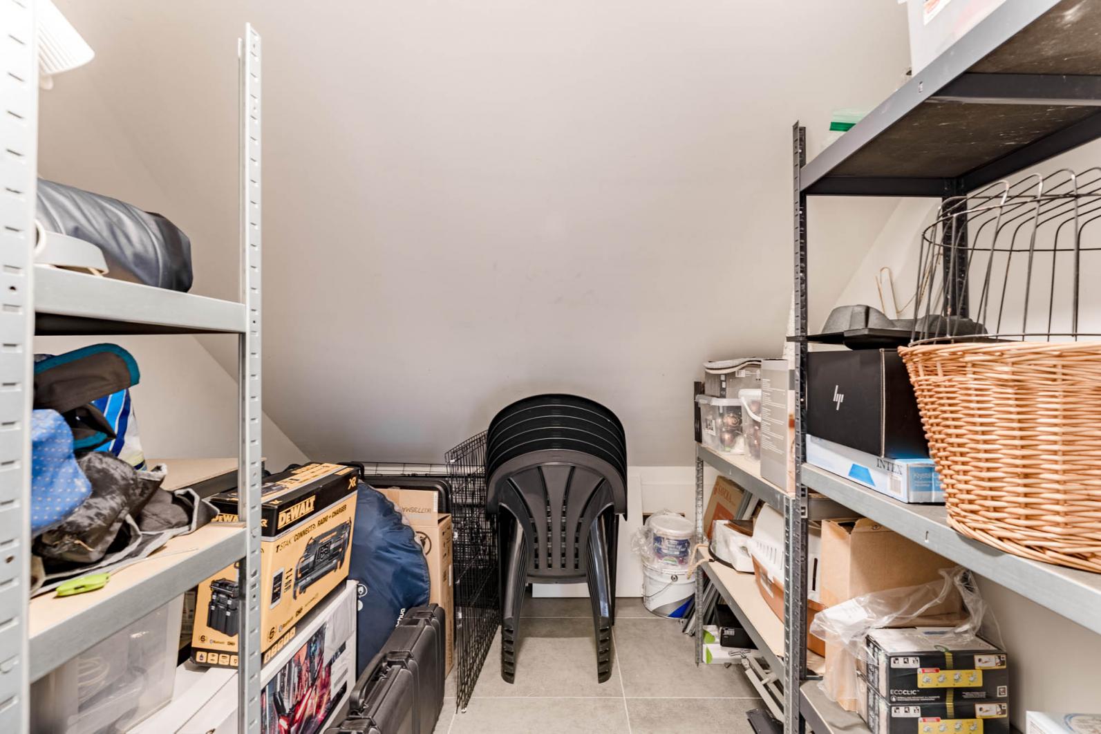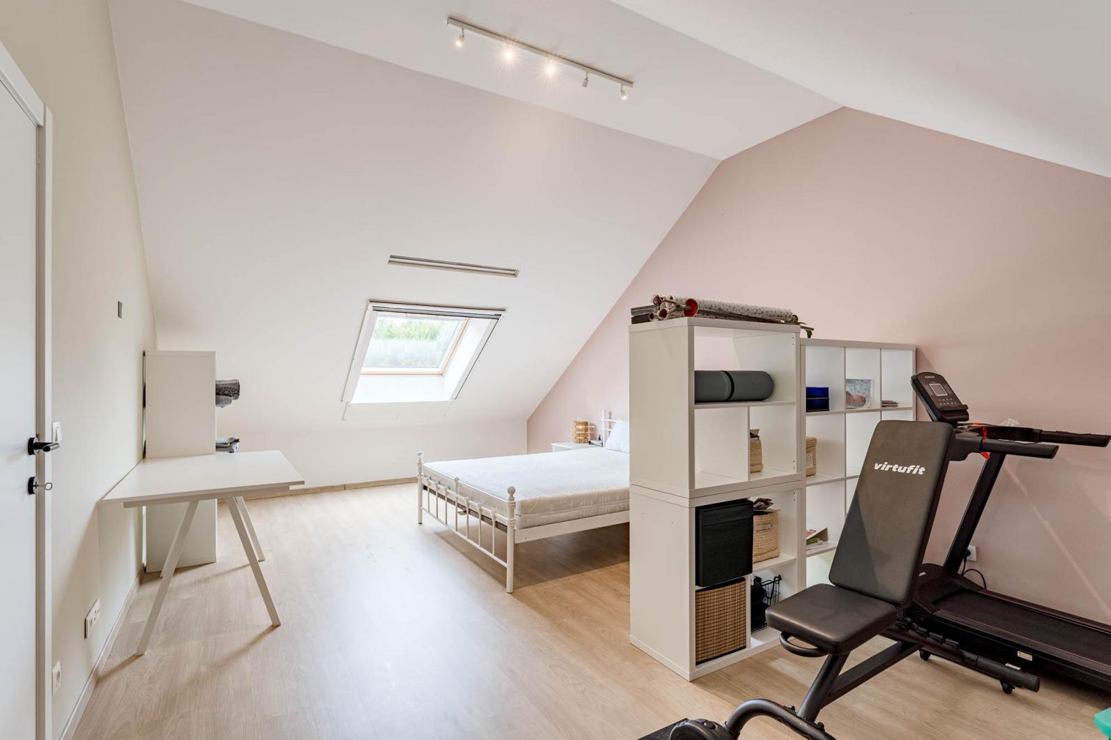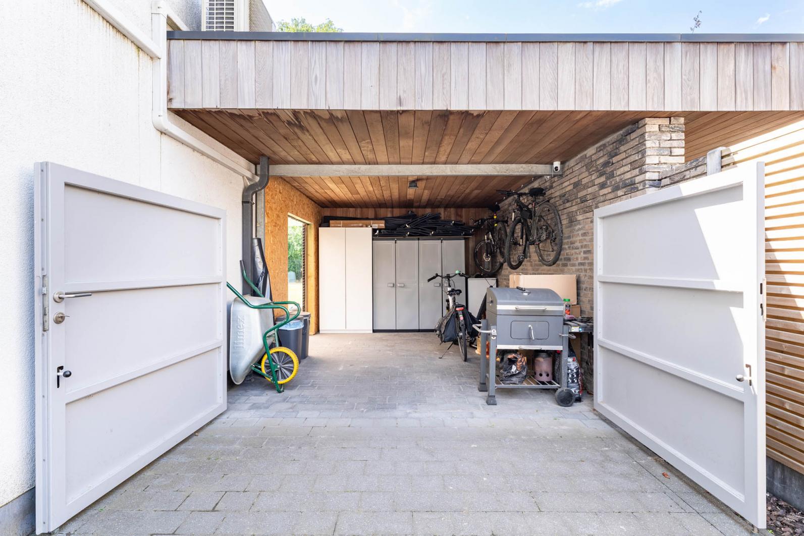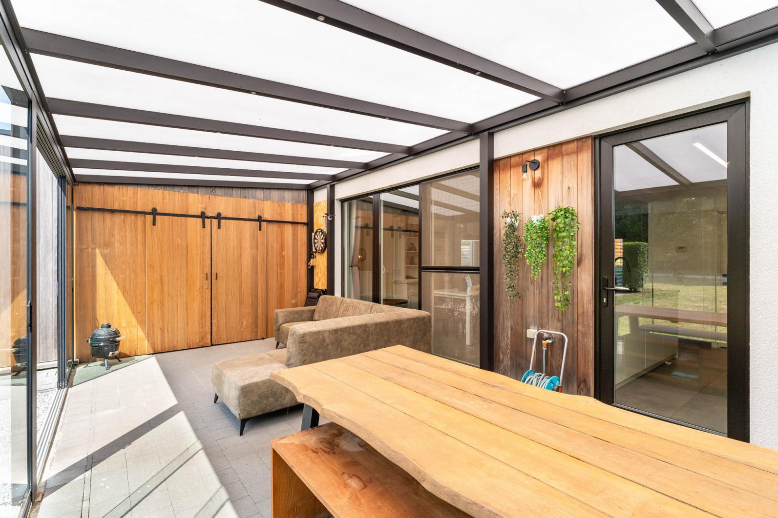 De volledig omheinde tuin biedt veel privacy en een zalige plek om tot rust te komen. Dankzij een poortje achteraan, wandel je rechtstreeks het achterliggende bos in. Daarnaast is er een tuinhuis en een afgewerkte, afgesloten carport aanwezig.