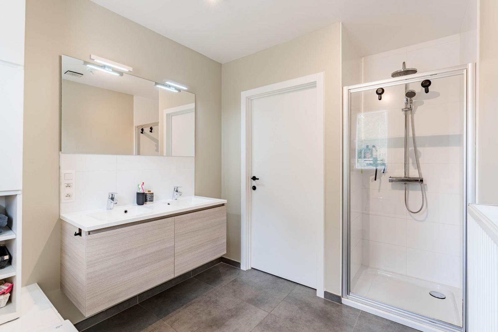 De eerste verdieping telt drie volwaardige slaapkamers en een stijlvolle badkamer met ligbad, douche en dubbele wastafel. Er is airco voorzien op iedere slaapkamer.