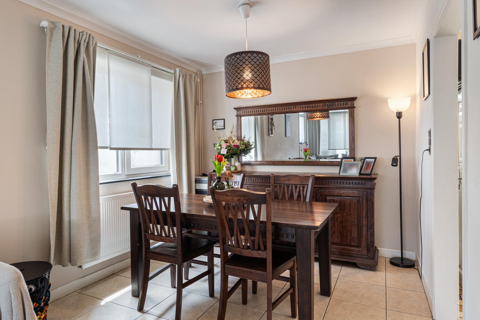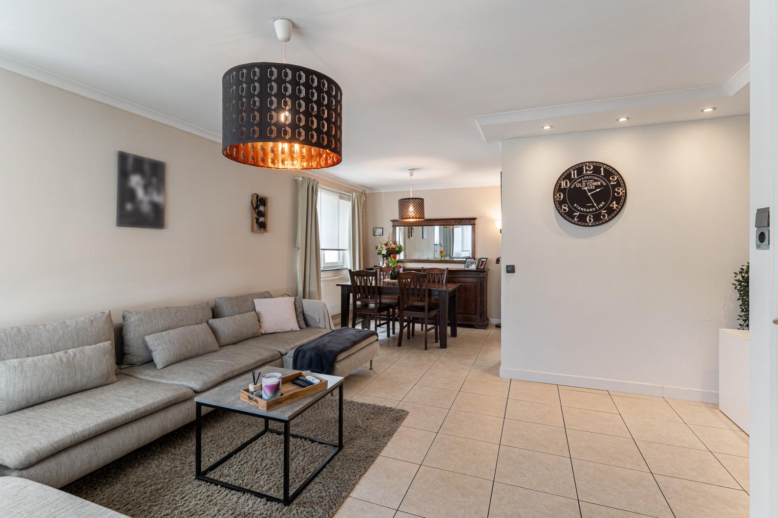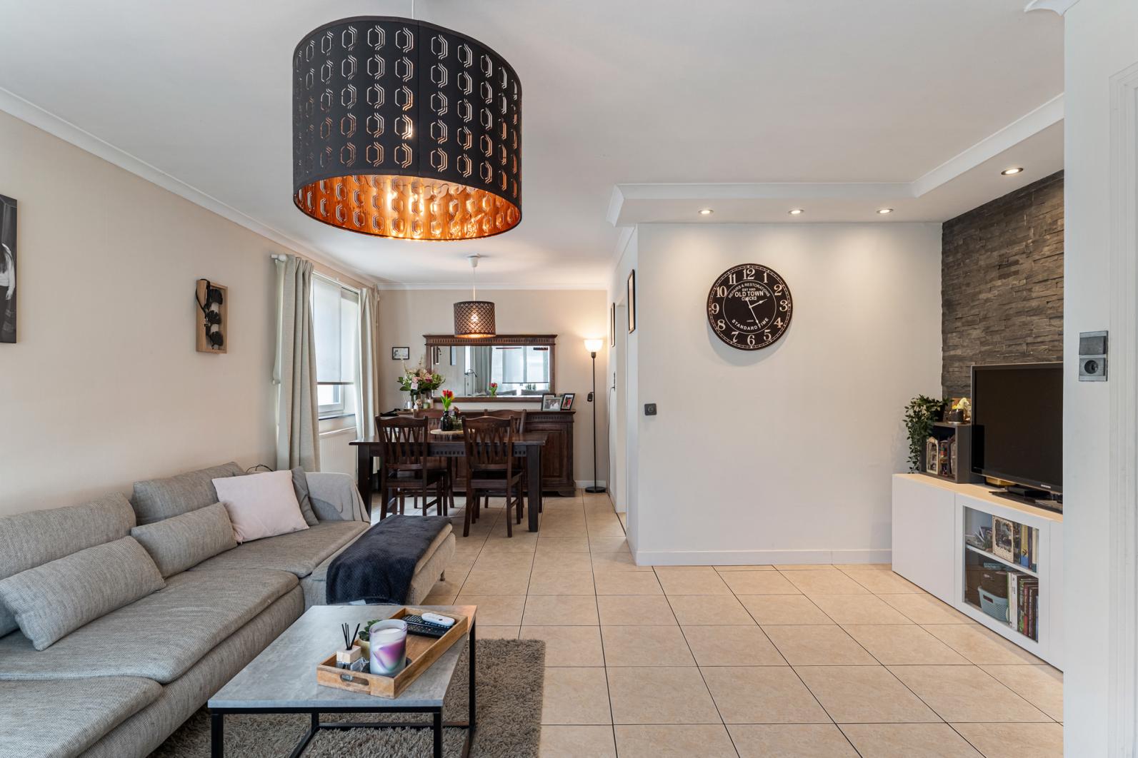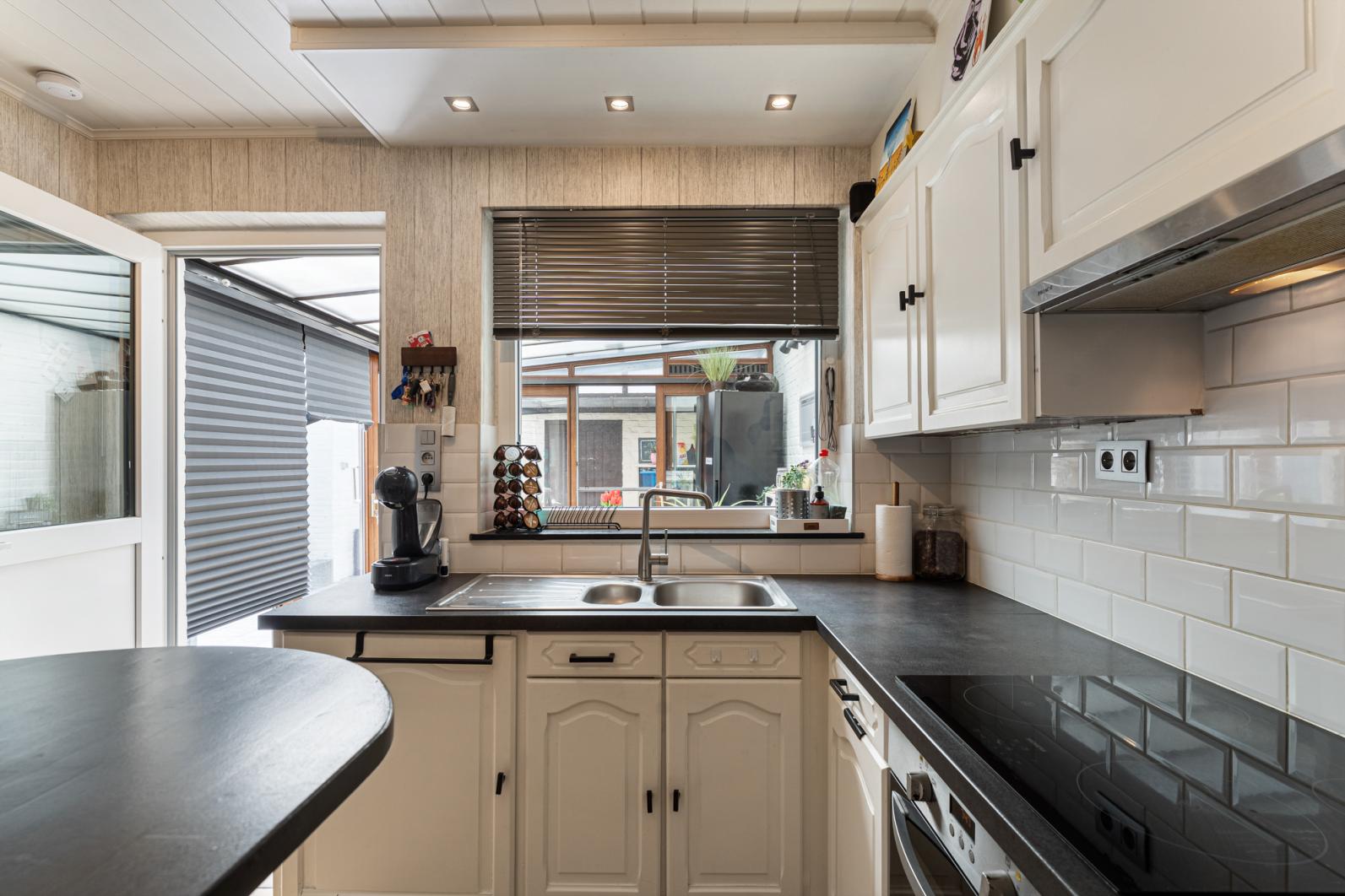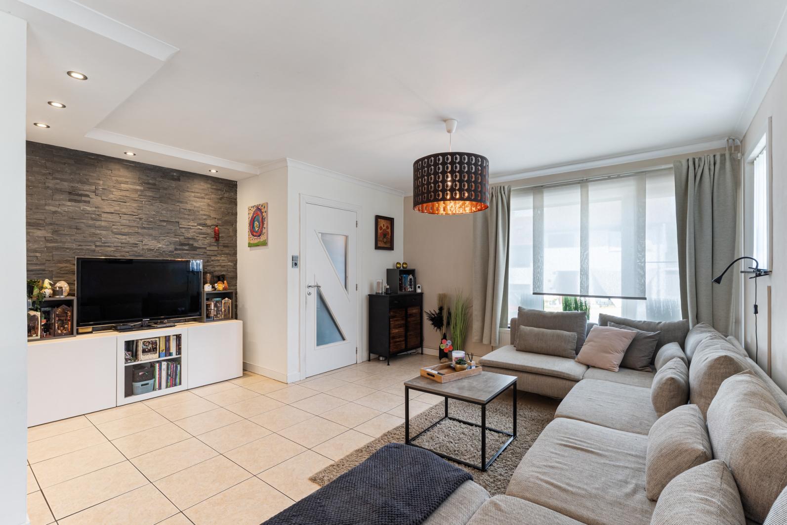 Binnenin vinden we een warme en functionele indeling, perfect voor een gezin. De gezellige zithoek en eethoek sluiten mooi aan op de keuken, waardoor je een open en huiselijke sfeer ervaart. Via de veranda, een echte troef in de tussenseizoenen,geniet je van het zicht op het terras in alle comfort.