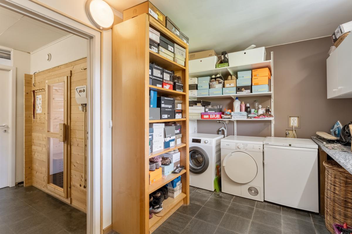De woning beschikt momenteel over drie slaapkamers, met de mogelijkheid om eenvoudig een vierde kamer te creëren (momenteel ingericht als dressing). Daarnaast is de woning voorzien van modern comfort zoals een grote waskamer en, als kers op de taart, een heerlijke sauna om volledig tot rust te komen. Uw auto parkeert u veilig in de inpandige garage of onder de dubbele carport.